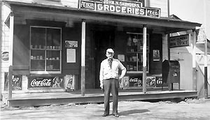 Actually, Cora's store was in reality "John N. Saunder's Groceries" in North Stamford, Connecticut. Several of these ads were filmed there. At left is John standing in front of his store on 29 March 1950.