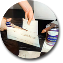 Corporate irresponsibility at its finest showing a smart woman, a wise woman laying down dangerous asbestos tile all by her clueless little self.
